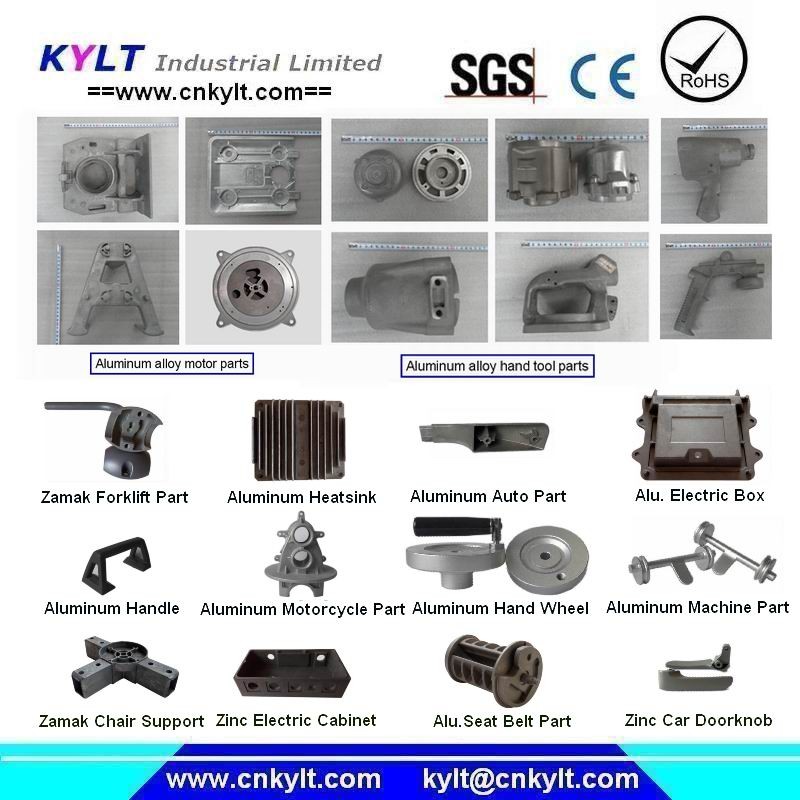 KYLT Aluminum Zinc Alloy Die Casting Parts cast by 200T, 280T,300T high pressure cold chamber die casting machines. Can produce all kinds of Zinc(Zn, zamak), Aluminum(Alu.) alloy injection parts as per cliends drawings or samples.